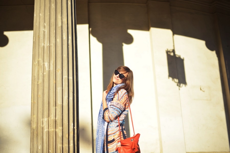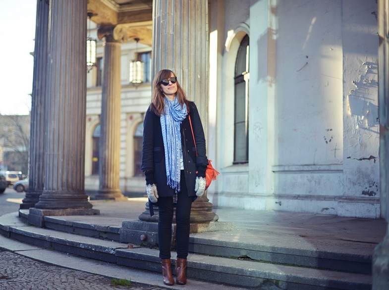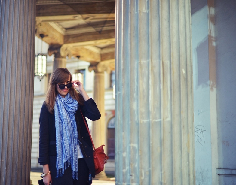 okulary / sunglasses: Le Specs via zalando.pl | szal / scarf: H&M | rękawiczki / gloves: Cubus | płaszcz / coat: Zalando | sweter / sweater: H&M (prezent od rodzinki/gift from my family) | torebka / bag: New Look | pierścionki / rings: Parfois, I am | bransoletka / bracelet: prezent od przyjaciółki/gift from my friend | buty / shoes: Massimo Dutti