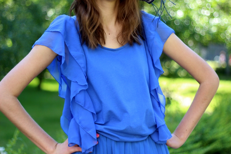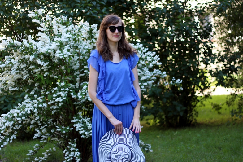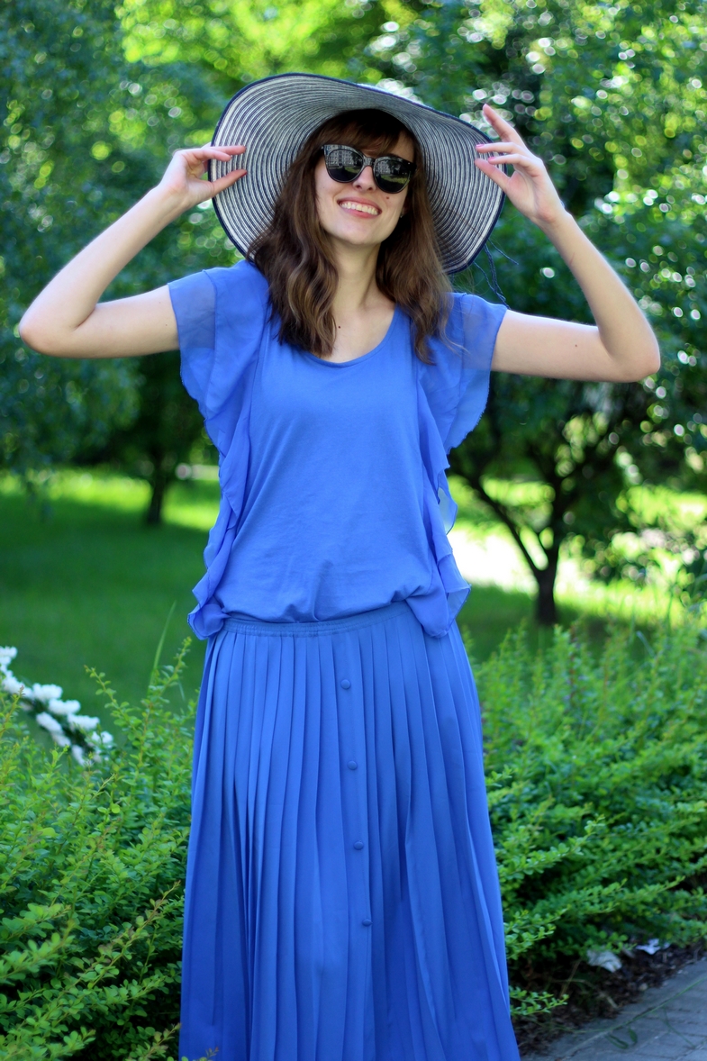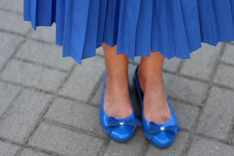 Co do stroju – często ostatnio noszę różne odcienie niebieskiego. Kobalt, błękit paryski, szafirowy, turkusowy… to tylko kilka z nich. Mimo tego, że niebieski kojarzy się z profesjonalizmem, to dla mnie jest to przede wszystkim barwa nieba – o świcie, przed burzą czy podczas upalnego bezchmurnego dnia. W odpowiednio mocnym odcieniu, na przykład electric blue może być nawet uznany za energetyczny. Może to też kwestia tego, że lato puka do naszych drzwi? Morskie inspiracje gwarantowane. A pomyśleć, że kiedyś nie znosiłam tego koloru!