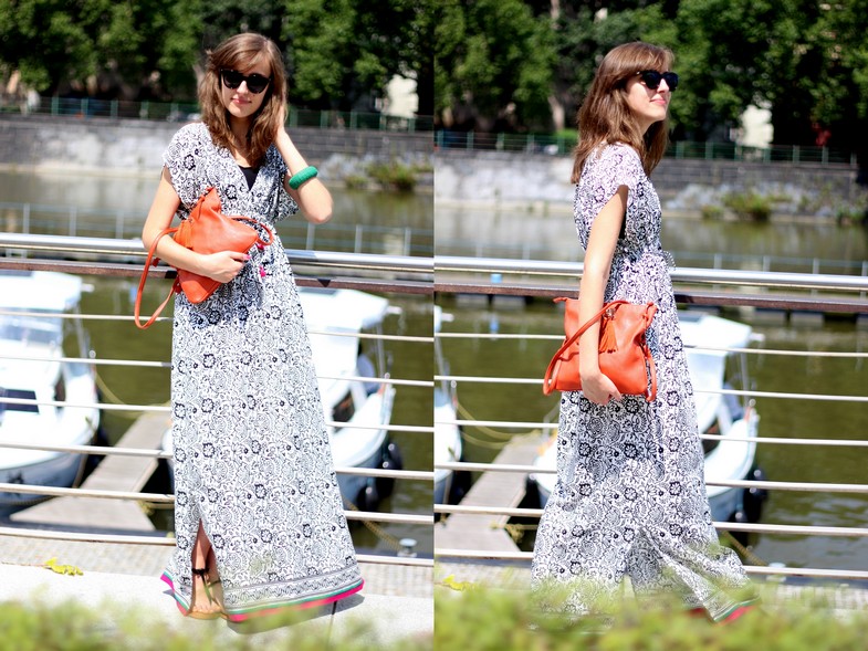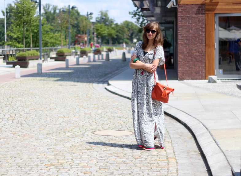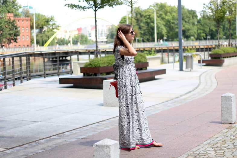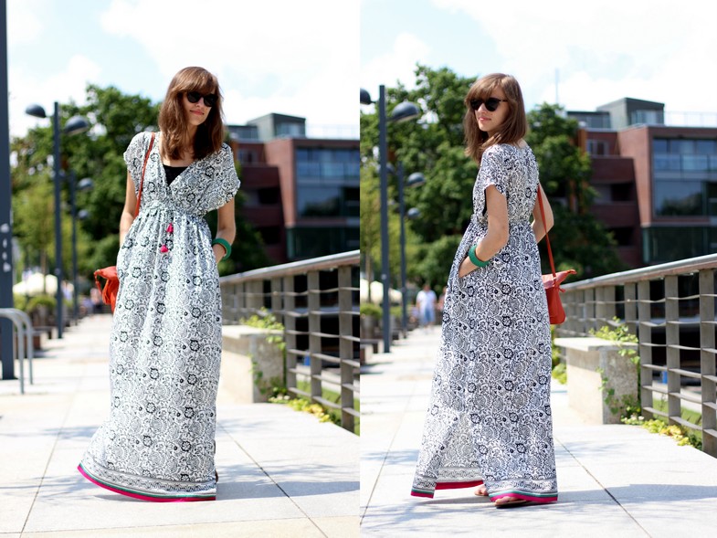 This is one of maxi dresses which I have in my wardrobe. Probably you remember my delicate frill flower dress, sporty maxi skirt or classic black or energetic yellow one. Today I’d like to present new dress which I bought on sales in Oysho. It’s made 100% from cotton. Ideal choice not only for summer in the city.