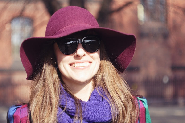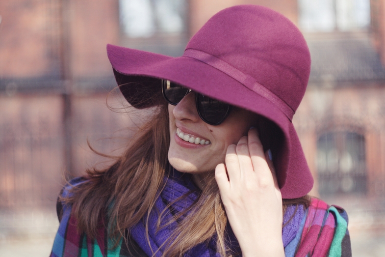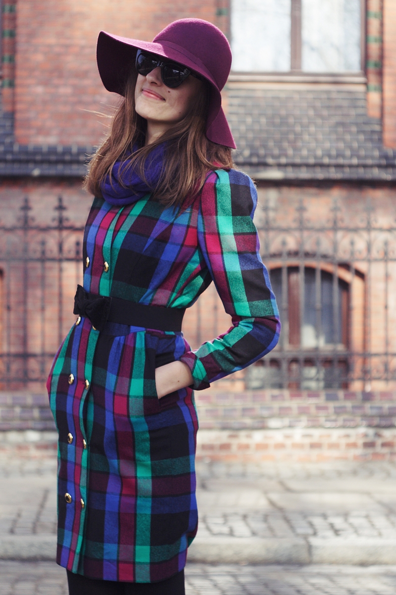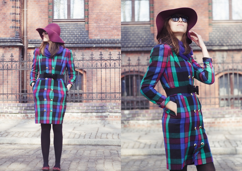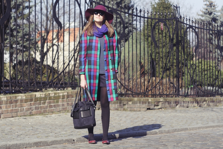 okulary przeciwsłoneczne / sunglasses: Le Specs via zalando.pl | kapelusz / hat: H&M | szal / scarf: H&M | płaszcz / coat: SH (tak na serio to wełniana sukienka!) | sweter / sweater: Cynthia Rowley | torebka / bag: Ignatowicz | buty / shoes: F&F