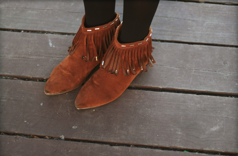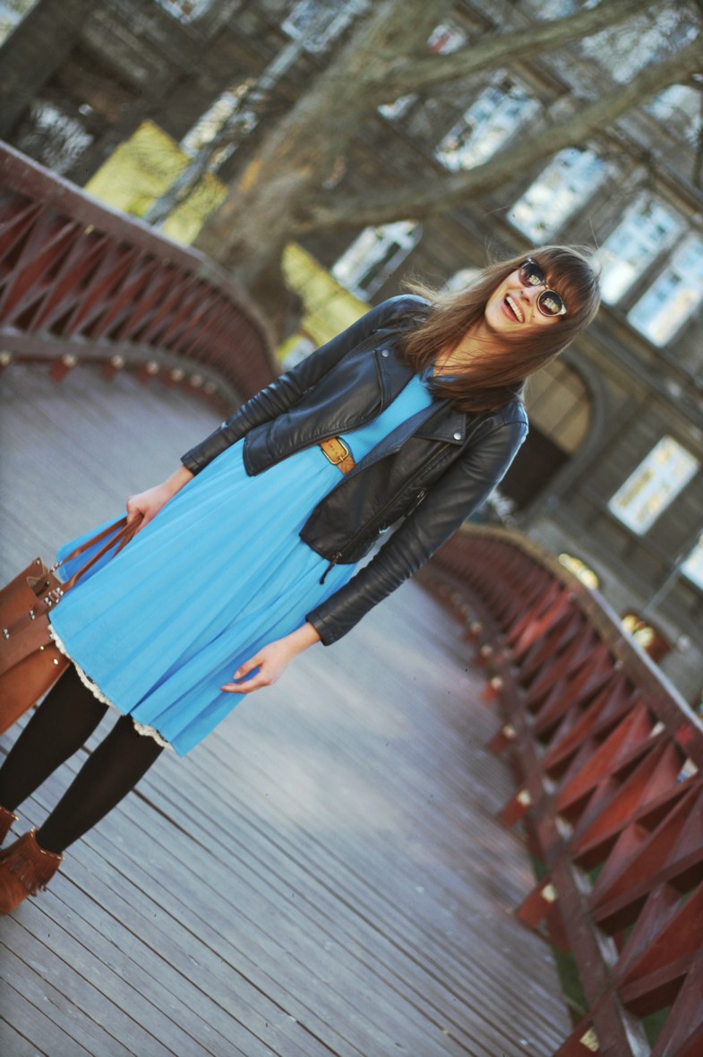 a w zestawie bardzo podoba mi się konsekwencja kolorystyczna – ten powtarzający się brąz, ta czerń i na kurtce i na rajstopach, ten ładny kontrast z błękitem….