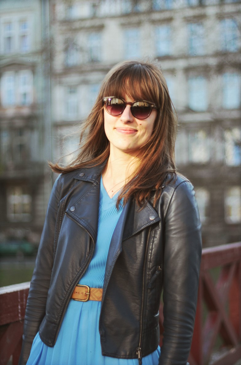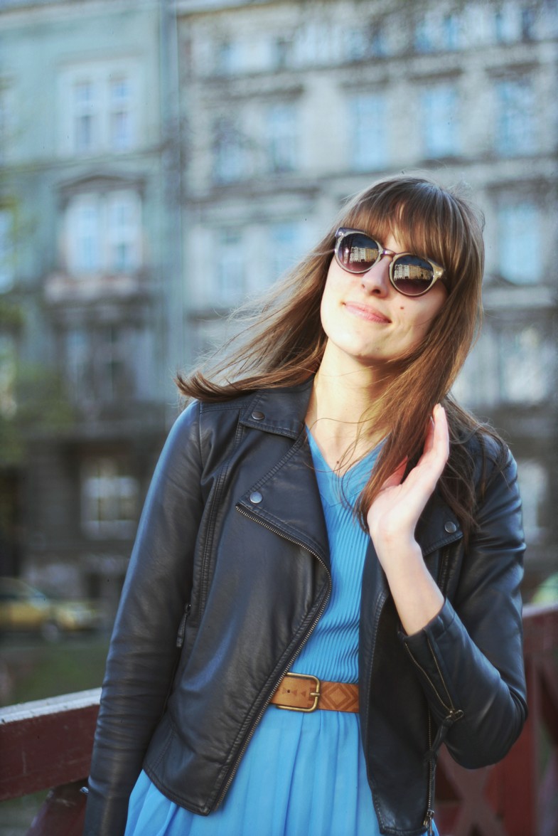 kurtka / jacket: DIVERSE | sukienka / dress: VINTAGE | pasek / belt: HOUSE | okulary / sunglasses: ZIGN | torebka / bag: DZIKI JÓZEF | botki / boots: DOLCIS