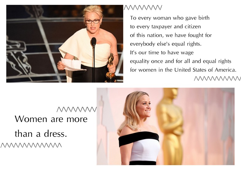 P.S. Kiedy przygotowywałam dla Was ten wpis, nie przewidziałam, że i na gali rozdania nagród filmowych – Oscarów – będziemy świadkami manifestu kobiet. Słowa Patricii Arquette można odnieść do problemów w każdym kraju na świecie, nie tylko USA, jak i do wielu branży, nie tylko tej rozrywkowej. Choć nie wiem czy wiecie, że w Hollywood kobiety otrzymują zaledwie 15% ról głównych oraz 30% ról, w których mają tekst do wypowiedzenia?