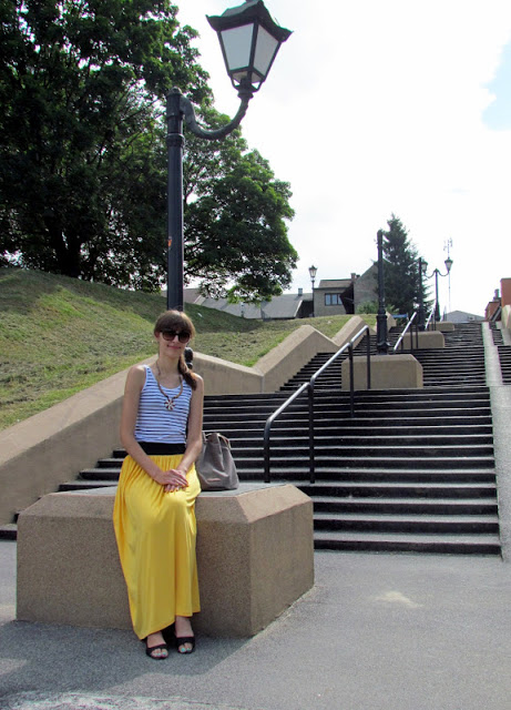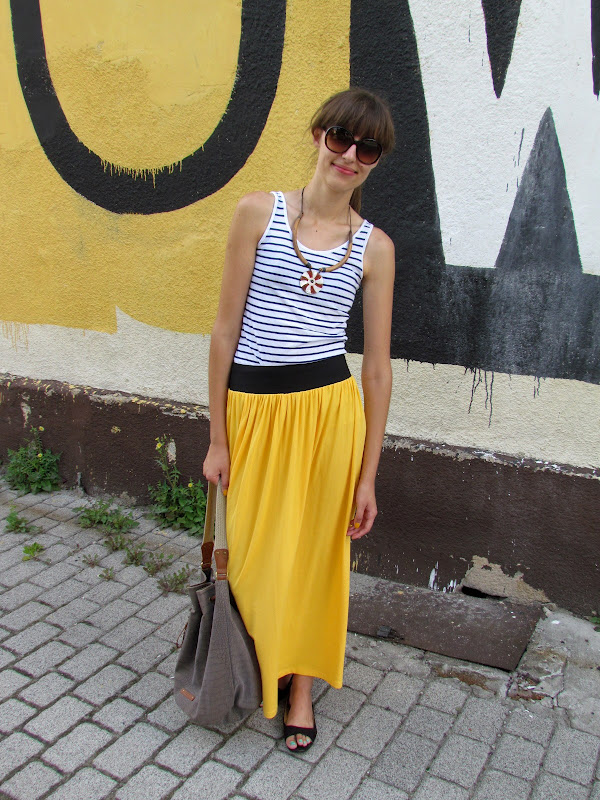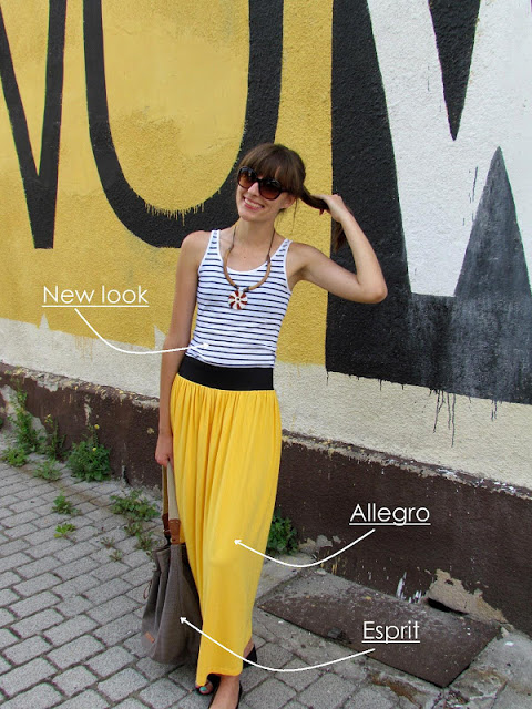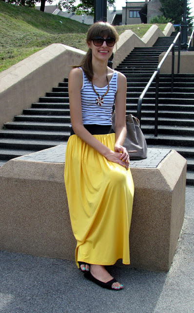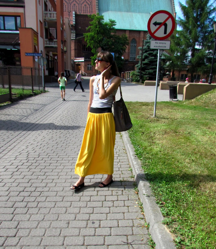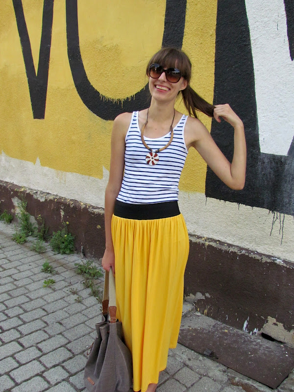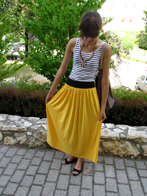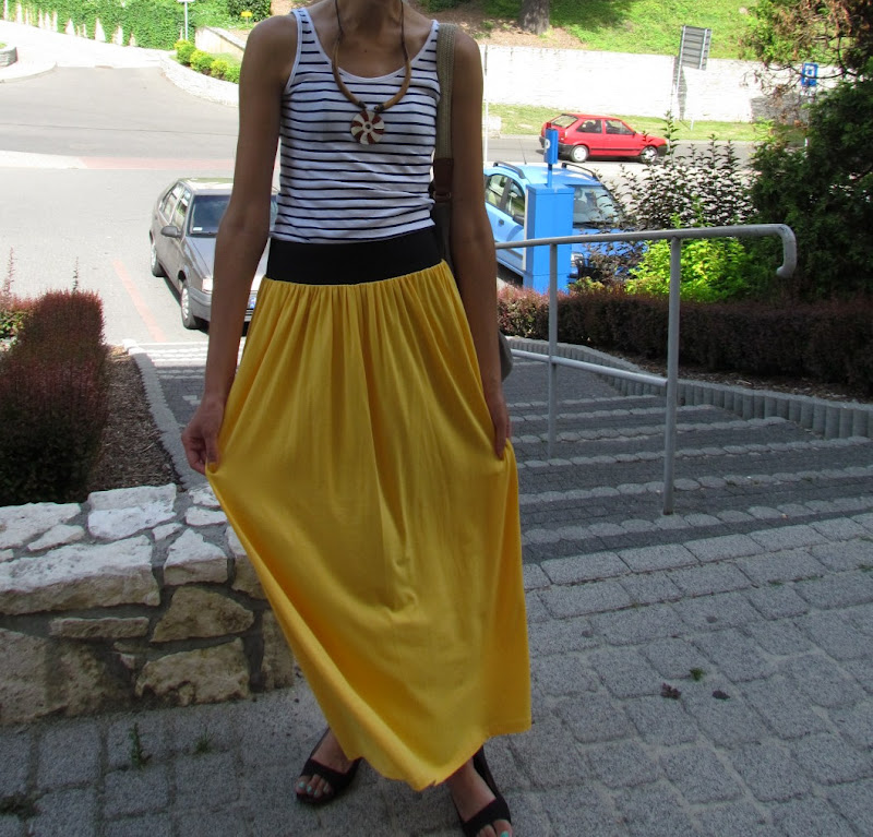 Na dodatek mój strój z dzisiejszego dnia, ulubienica tego lata – żółta spódnica, naszyjnik z Bułgarii prosty top i torba-worek. Nic nadzwyczajnego 🙂