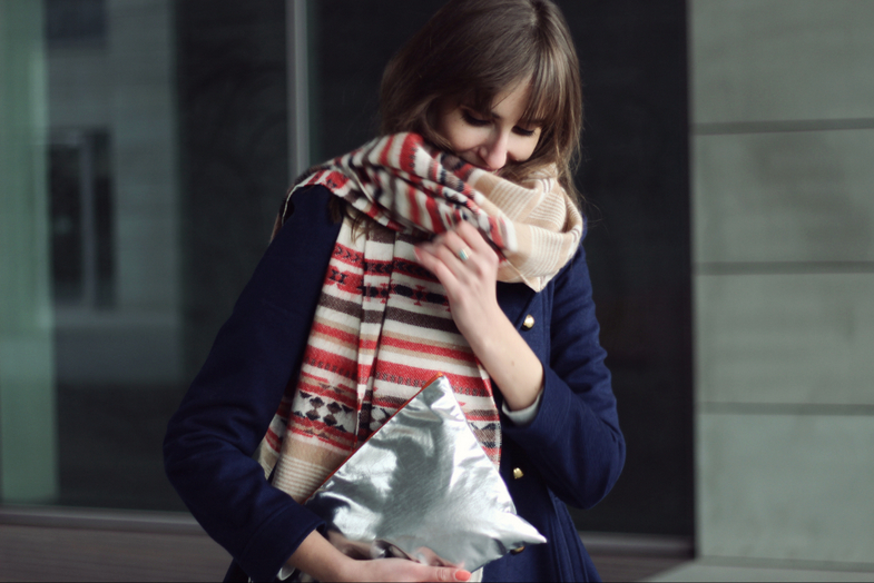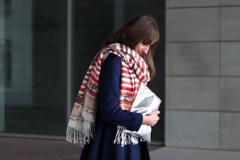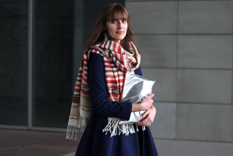 szal / scarf: H&M | kopertówka / clutch: MAG PIE | płaszcz / coat: NEW LOOK | spódnica / skirt: BOOM BLOOM | buty / shoes: ZALANDO
