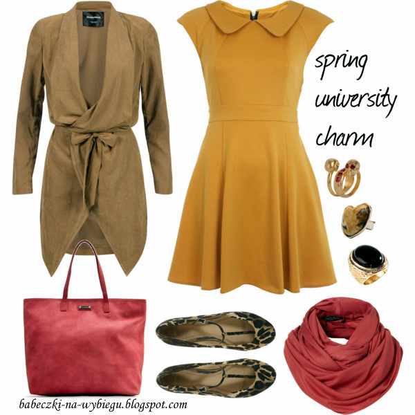| sukienka oasis, kardigan sonia rykiel, torba mango, buty oasis, naszyjnik charmandchain.com, pierścionek nordstrom.com |