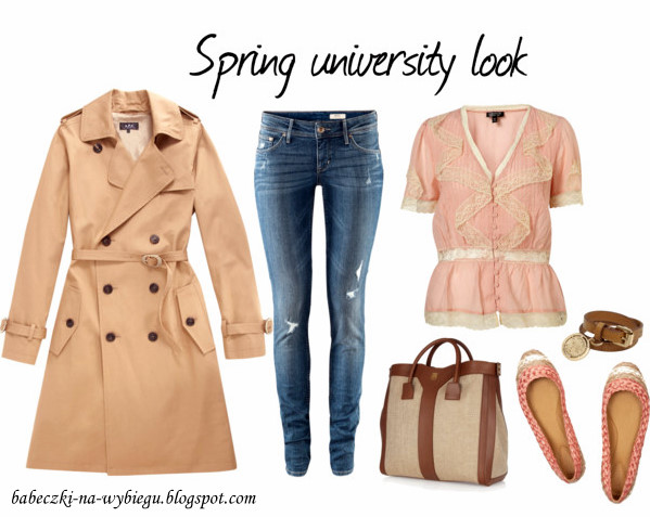 | bluzka topshop, baleriny chloe, bransoleta mulberry, dżinsy H&M, płaszcz barneys.com, torebka YSL |
