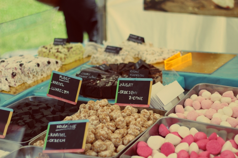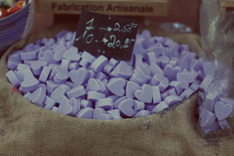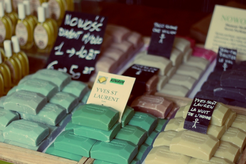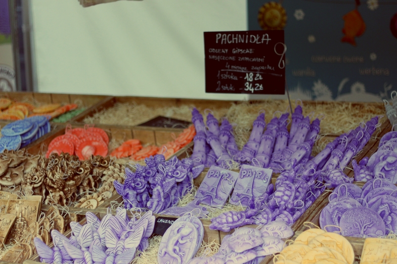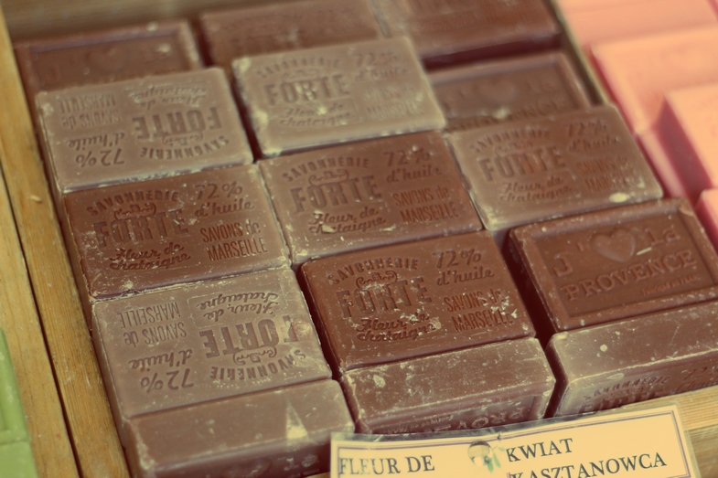 W czwartek, czyli w dniu rozpoczęcia Jarmarku francuskiego, jeszcze nie wszystkie stoiska były czynne. Szkoda, bo ani lodów, ani bagietek nie mogłam spróbować. Najbardziej urzekły mnie mydełka, których różnorodność zapachów mogła przyprawić o ból głowy 😉 Kilka kupiłam. Do tego jeszcze maślane ciastka – dobre, ale też nie zachwycające. Choć podniebienie zdecydowanie zostało uraczone królewsko. Kiełbasa, foi gras, sery, wina, przetwory prezentowały się zacnie. Gorzej z biżuterią, która wyglądała kiczowato. Minusy zostały jednak przysłonięte przez te pyszne zapachy i miłą obsługę. Przy okazji – nie wiem co tam robiły typowe żelko-podobne twory, ale przypomniała mi się niedawna historia z lodami w roli głównej. Wybrałam się raz do Amorinio, dlatego, że polecała mi je przyjaciółka. Faktycznie smaków do wyboru mnóstwo. Rozglądałam się chwilę i zwróciły moją uwagę te z nazwą lukrecja. Oczywiście coś kojarzyłam, ale nie mogłam sobie przypomnieć co to jest za smak. Wystarczyło spróbować jeden kęs, żeby przekonać się, że ta pięknie brzmiąca lukrecja to okropny anyż. Cóż – lody same w sobie były dobre, intensywne i o fajnej konsystencji. Ale źle dokonałam wyboru smaku. Za to mogę polecić te o smaku czarnego sezamu!