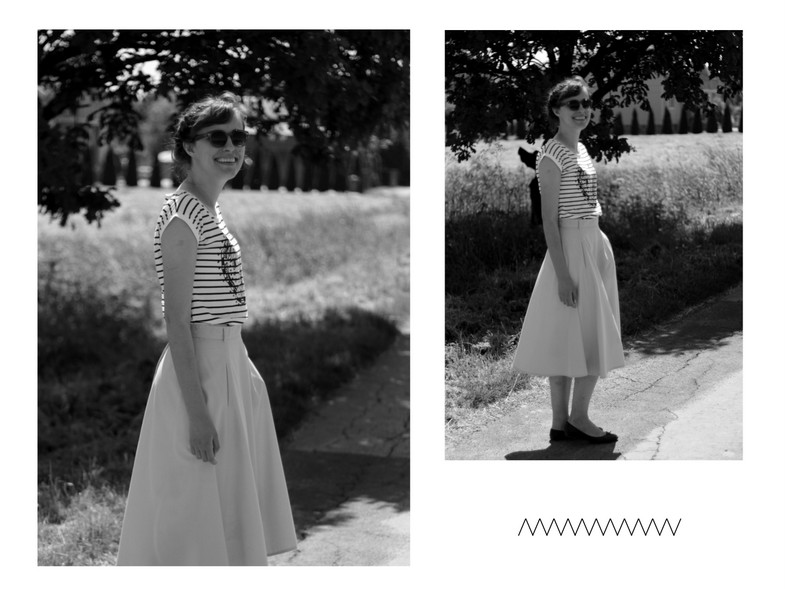 Jeśli już stawiam na spódnice, to albo wybieram długie albo takie przedłużane mini – przed kolano, ale niewiele przed nie 😉