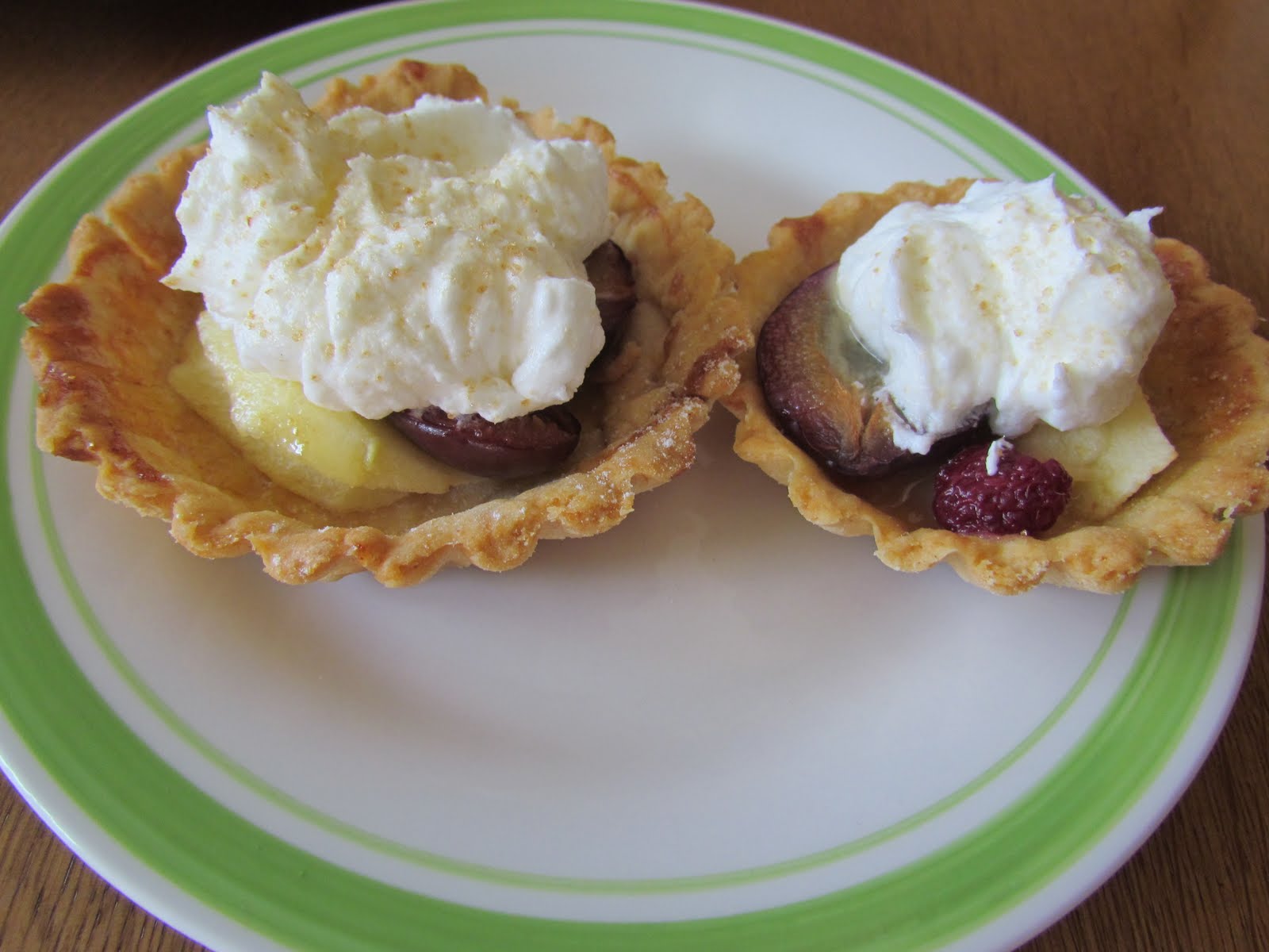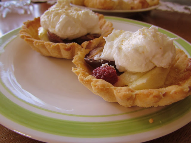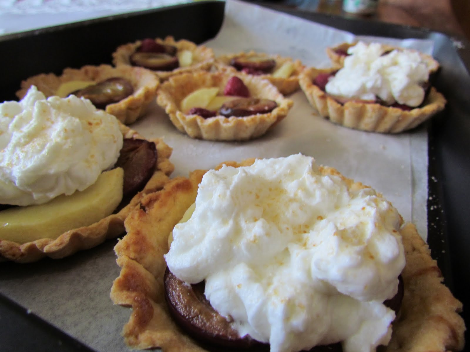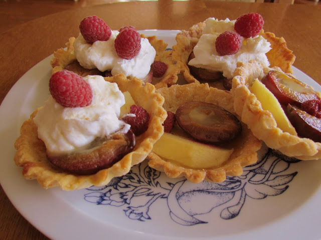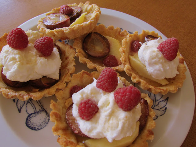 Przepis na mini tarty (albo dużą tartę) ze śliwkami, jabłkami i malinami.