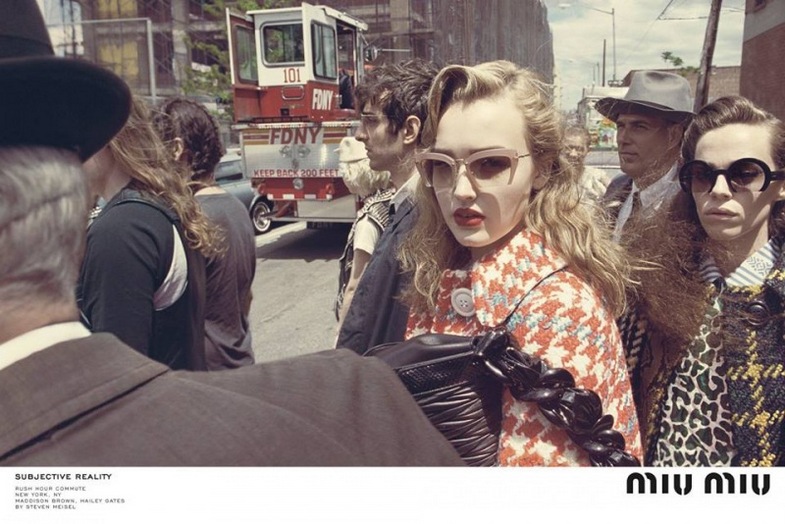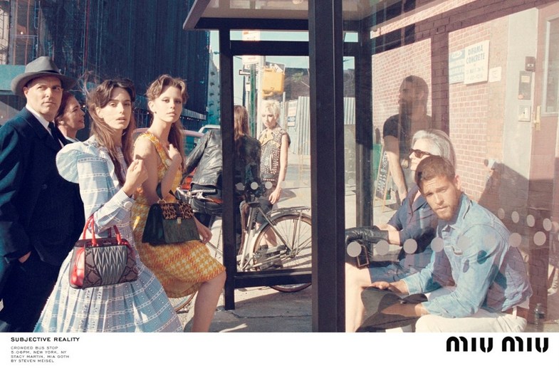 Właściwie powinnam chyba omówić ją razem z Pradą (Miu Miu to marka stworzona przez Miuccię Pradę i jej męża Patrizio Bertelliego w 1992 roku), ale koncepcja Subjective reality zasługuje na osobny rozdział w trendach na jesień i zimę 2015. Zachwyca kolekcja, choć jeszcze bardziej idea, która za nią stoi. Przez nawiązania do Manhattanu lat 60. rysuje się postać silnej, ale pełnej humoru indywidualistki, która czasem przypomina Audrey Hepburn ze Śniadania u Tiffany’ego, a czasem Mię Farrow z Dziecka Rosmary. Jeśli dodać do tego połączenia wzorów i kolorów, których nie powstydziłyby się redaktorki założonego przez Andy’ego Warhola magazynu Interview, otrzymujemy dość osobliwy miks i właśnie subiektywne spojrzenie na rzeczywistość przez pryzmat mody high fashion w sesji wizerunkowej wykonanej przez Stephena Meisela, z udziałem Mii Goth, Stacey Martin i Hailey Gates. Ta koncepcja nie wzięła się znikąd. Subiektywna rzeczywistość odnosi się nie do tego, jak świat wygląda na zewnątrz, ale jaki jego obraz mamy w swojej świadomości. Miuccia powiedziała kiedyś: Studiuj modę, analizuj filmy i sztukę, a potem siebie. Ta esencja pojawiła się w kolekcji domu mody Miu Miu na sezon jesień/zima 2015. Na uwagę zasługują też podpisy zdjęć, które przywodzą na myśl tytuły fotografii reportażowych, np. oczekiwanie na przystanku autobusowym, w godzinach szczytu, popołudniowe słońce i dziewczyny podchodzące do samochodu.