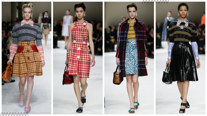 Jeśli chcecie dowiedzieć się czegoś więcej o historii powstania marki Prada, polecam Wam książkę Prada. Obyczajowy fenomen, autorstwa Giana Luigi Paracchiniego. Akcesoria do podróżowania, oskarżenie o plagiat, włoska partia komunistyczna i kreacje od YSL, wreszcie sztuka, jachty i tytuł jednej z najbardziej wpływowych kobiet świata mody. Mnie historia Miucci i jej sposób prowadzenia marki zupełnie wciągnęły. Wydaje mi się, że jest ona sto razy bardziej ciekawa niż biografia Gabrielle Chanel. Co do kolekcji: cukierkowe kolory, idealne kroje, świat, który bardziej przypomina Disney’owskie animacje niż jesień. Poprzednie propozycje Prady nie do końca mnie przekonywały, ale ta kolekcja to naprawdę coś godnego uwagi!