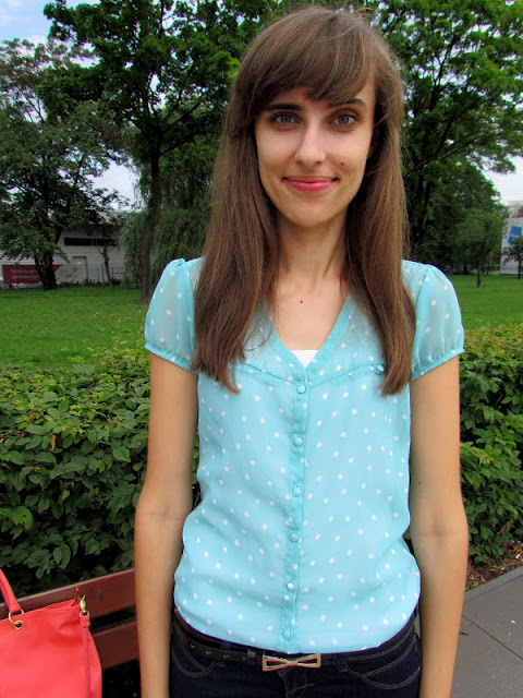 14 lat agoświetnie wyglądacie;) uroczą masz tą bluzeczkę w kropeczki i jeszcze torebka cudo;)