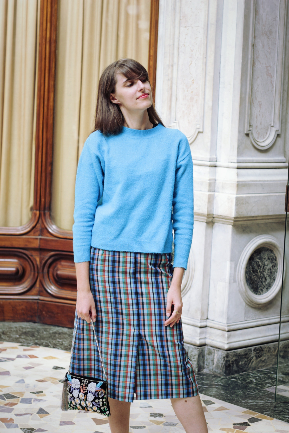 Nostalgia w modzie to też spódnica wypożyczona z Biblioteki Ubrań. Firma, choć patrzy wprzód, wyszukuje to, co najlepsze z przeszłości. I właśnie te unikatowe sztuki tam znajdziecie. Nie mniej, nie więcej. Jeansowa kurtka, która przypomina tę zakładaną na pierwsze szkolne dyskoteki, koszula w abstrakcyjne wzory niczym zdjęte z obrazów Kandinsky’ego, plisowana spódnica przywołująca zdjęcia babci z jej lat młodości i marynarki w kratę, które z powodzeniem mogłyby stanąć obok oryginalnych projektów z lat 80. w muzeum Giorgio Armaniego. Ta niezwykła wypożyczalnia ciuchów każdemu może wskazać inne wspomnienie i skojarzenie. I tym sposobem, przez nostalgię, przyzwyczaja nas do korzystania z ekonomii cyrkularnej w modzie.