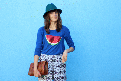 A zestaw wspaniały, już kilka razy podkreślałam, jak bardzo kocham Twój sweterek z arbuzem (:
