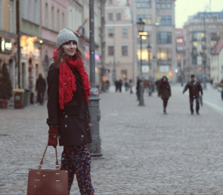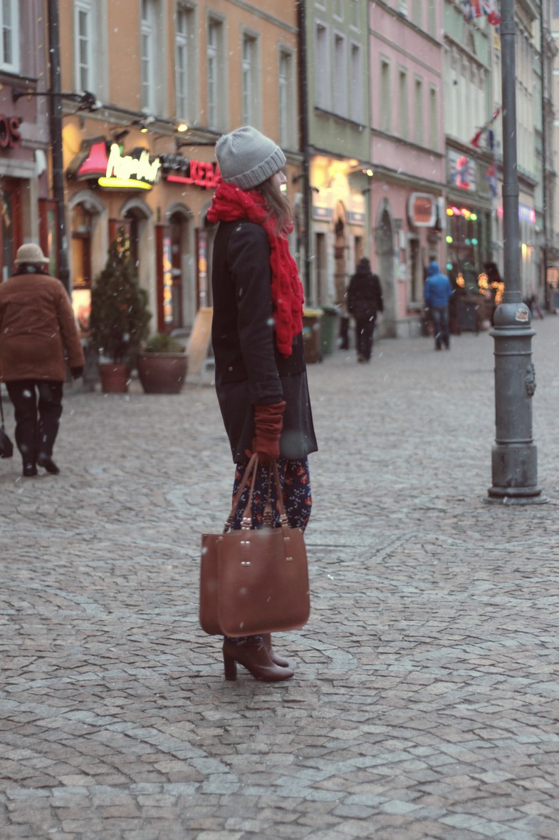 czapka / hat: C&A | płaszcz / coat: ZALANDO | szal / scarf: prezent | golf / turtleneck: PROMOD | spodnie / trousers: QED LONDON via TK MAXX | buty / shoes: MASSIMO DUTTI | torba / bag: DZIKI JÓZEF
