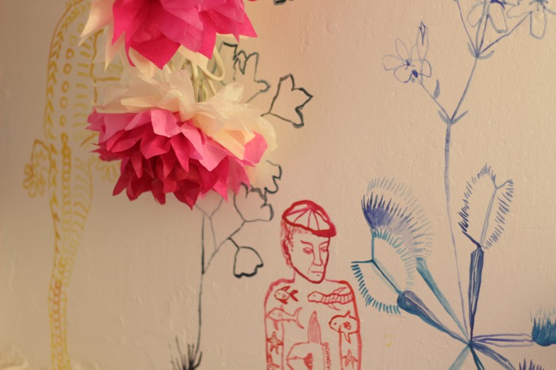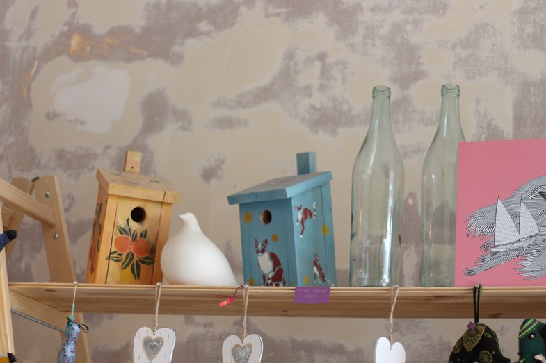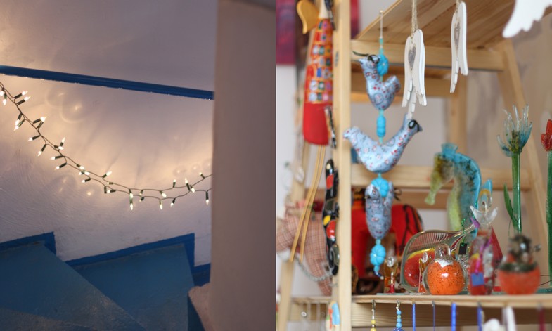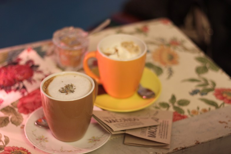 Macondo wydaje się maleńkie, a tymczasem… skrywa różne zakamarki. Żeby przejść do części kawiarnianej przemierzamy sklepik. Jeśli chcemy nieco odizolować się od wolnej przestrzeni to możemy wybrać się, błękitnymi jak w Grecji schodkami, na taką jakby antresolę z wygodną sofą i przytłumionym światłem. Ściany ozdobione są malunkami i dziełami sztuki. Bo jest to również galeria! Nie tylko z nazwy. Na każdy miesiąc zaplanowane są konkretne wydarzenia: wystawy, warsztaty czy spotkania z poezją. O dotychczasowych możecie przeczytać na blogu kawiarni.