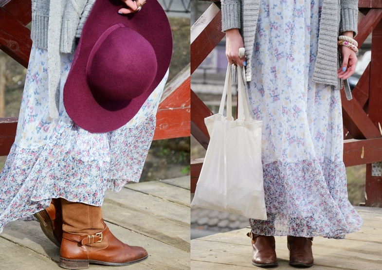 A teraz, jak zawsze płynnie, przechodzimy do tego, co mam na sobie i dlaczego jest to powiązane z tym, co napisałam powyżej. Mam na sobie m.in. wełniany kapelusz z H&M (jest jakościowo dobry materiał!), kilkuletnią sukienkę z Zary (jestem zdziwiona, że przy na prawdę częstym użytkowaniu, tak fantastycznie się trzyma), sweter z House’a (trochę już się zmechacił, ale też od dłuższego czasu go noszę) oraz skórzane botki Massimo Dutti (te buty bardzo rzadko goszczą na blogu, a przyznam, że w okresach jesiennym i wiosennym są przeze mnie najbardziej eksploatowane). Te części garderoby są dowodem na to, że w popularnych sieciówkach można znaleźć ubrania i dodatki „na lata”. Jednak przychodzi to niełatwo. Trzeba niestety przekopać się przez sterty bylejakości, poliestru i szmatek. Pytanie, czy kogoś to jeszcze dziwi?