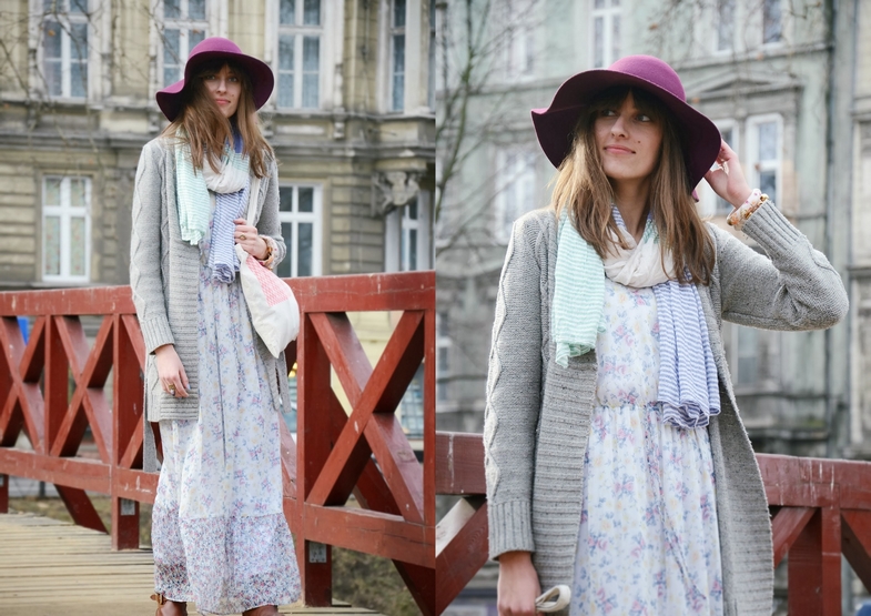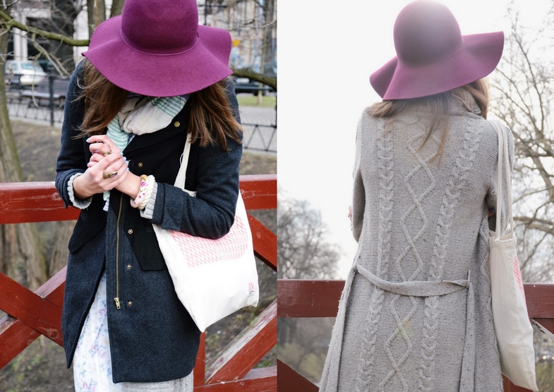 kapelusz / hat : H&M | szal / scarf : I am | płaszcz / coat : Zalando | sweter / sweater : House | sukienka / dress : Zara | torba / bag : WrocloveDesign (o którym Wam tu pisałam) | bransoletki / bracelets : prezenty od rodziny i przyjaciółki Marty / gifts from my family and friend Marta | pierścionki / rings : Parfois, C&A | buty / shoes : Massimo Dutti