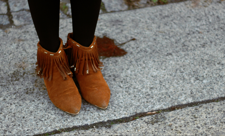 Widziałabym tu sznurowane buty lub botki bez frędzli 🙂