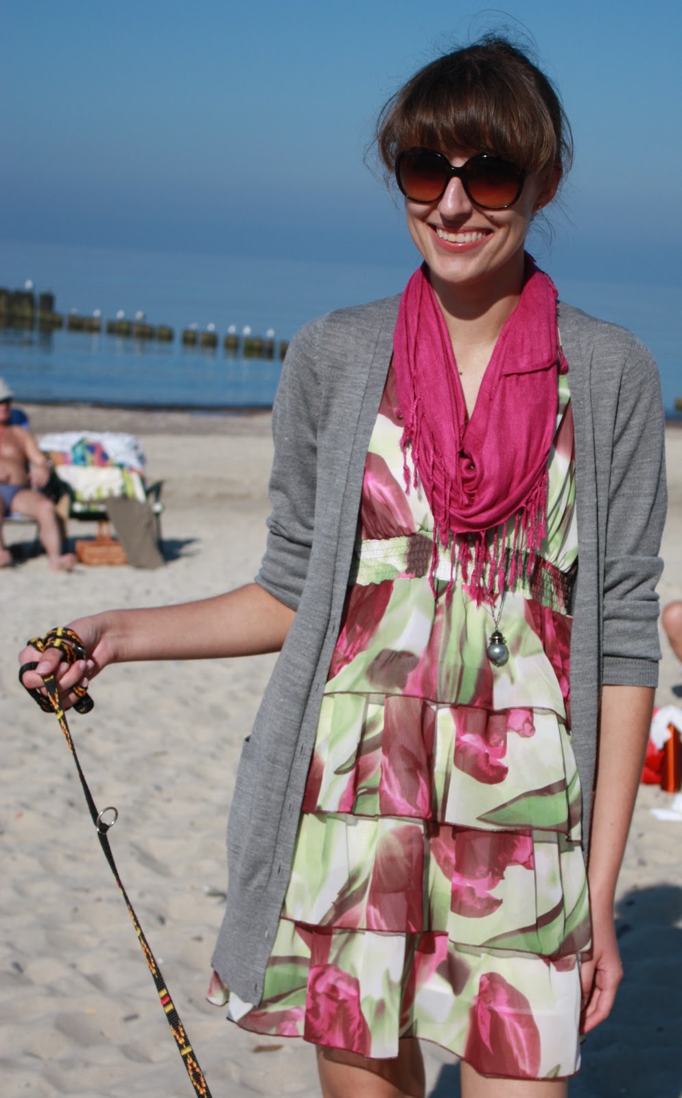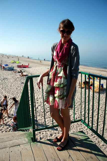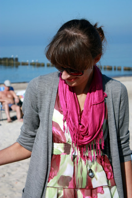 I takie małe przemyślenia mam. A propos mody oczywiście. Wiecie, nie trzeba mieć majątku, żeby ładnie wyglądać. Nie trzeba naśladować bez sensu trendów. Uhuhuhu pewnie już gromy lecą że gadam bez sensu i oczywistości. Plus nuda, bo Ameryki nie odkryłam (a jakże! „ukochany” mój trend wśród streetfashionerów wszystko we wzór flagi amerukańskiej, buty, rajstopy, koszule, spódnice)… Na swoim przykładzie sprawdziłam nienaśladowncitwo plus adaptowanie elementów trendów do siebie w niskiej cenie. I da się! Nieskromnie mówiąc 😉 Sukienka kosztowała mnie całe 20zł (na przecenie ze 129zł chyba), kardigan i buty około 40zł, wisior z Cubusa jakieś 14zł, szalik też coś koło tego. Odcienie zieleni będą „na topie” wiosną, mocne barwy takie jak fuksja są trendy dziś (w połączeniu z innymi mocnymi kolorami). Ja po swojemu – kwieciście 😉 Może i nie mój styl te flagi, dziwaczne buty, torby z kitą lisa, podarte rajstopy/kabaretki, ogromniaste swetrzyska, wszędobylskie ostatnio bluzki/spódnice/sukienki z końmi/gwiazdkami, poszarpane szorty dżinsowe odsłaniające pupkę i paskudne kalosze… Ale na szczęście mam swój rozum i nie mam zamiaru kreować się na dziewczynę kowboja, indiańską szamankę, galaktyczne ufo z lennonkami na nosie czy poobdzieraną prostytutkę.. bo tak jest trendy… bo tak się nosi w Londynie, NY czy LA… Dziewczyny, wypracujcie własny styl!