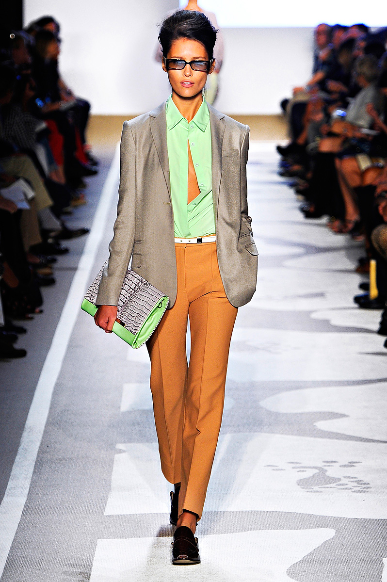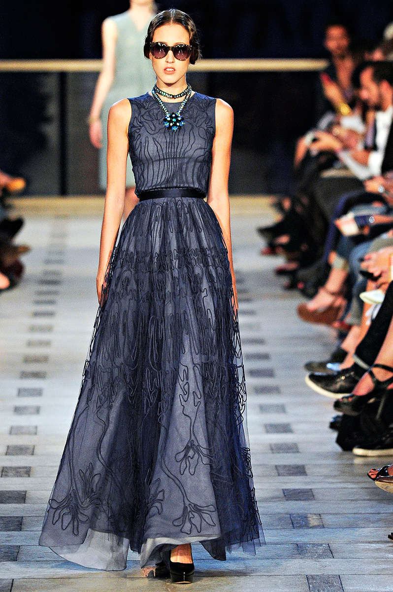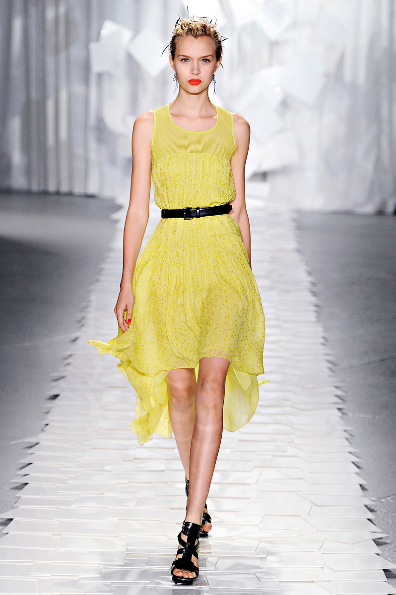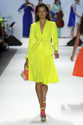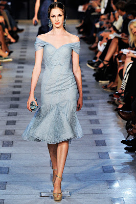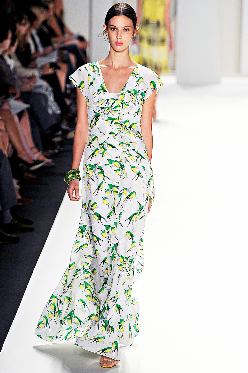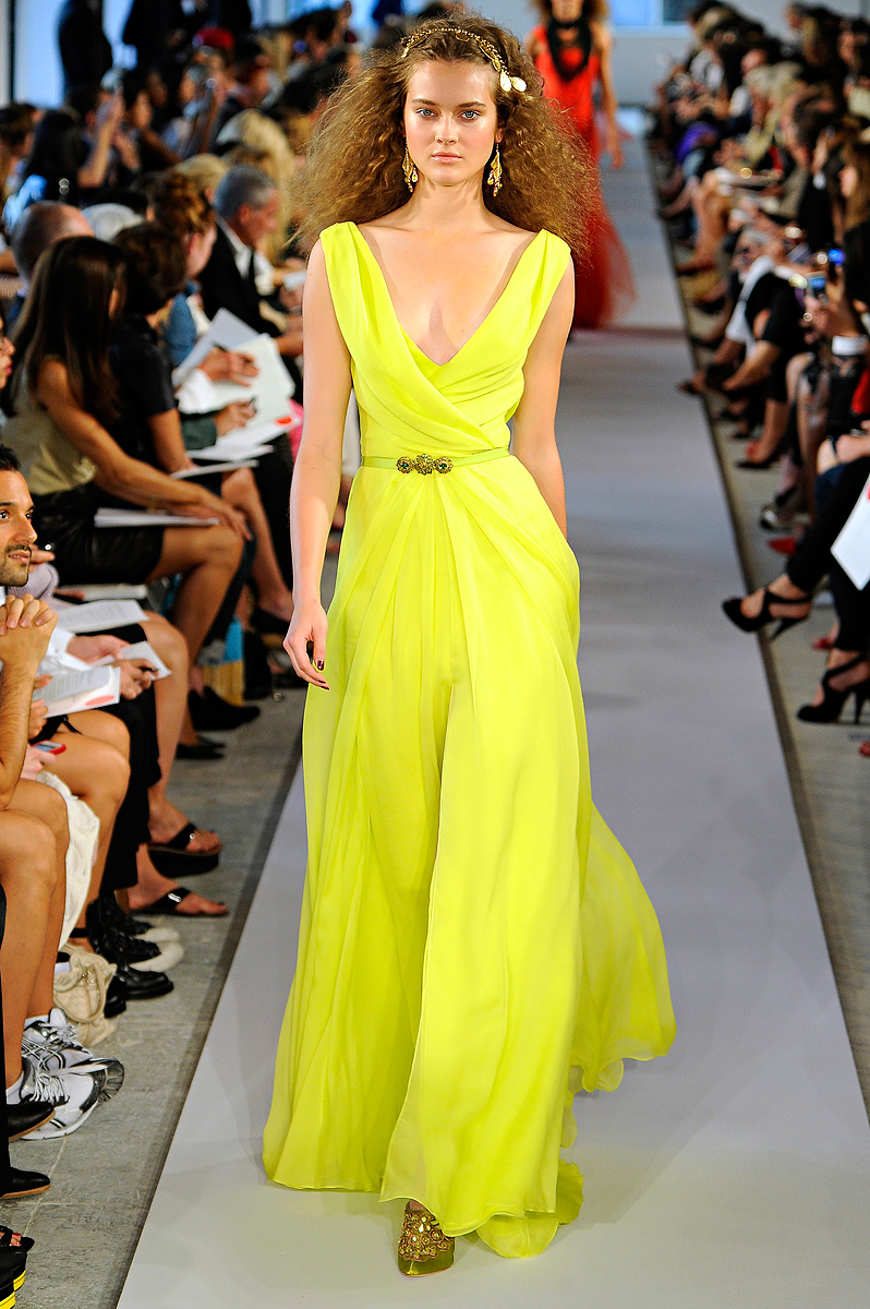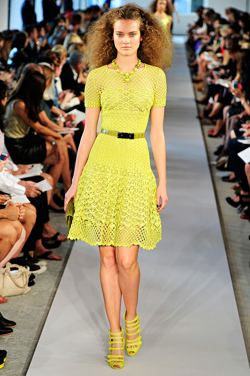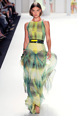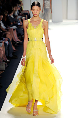 Carolina Herrera sięga do geometrii, ale w zwiewnej, kobiecej formie. I po raz kolejny w jednym z pięknych, nasyconych odcieni pojawia się kolor żółty. Warto zwrócić na niego uwagę.