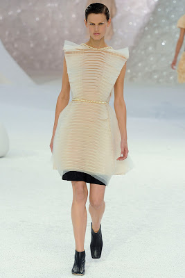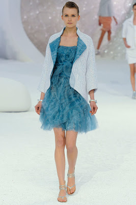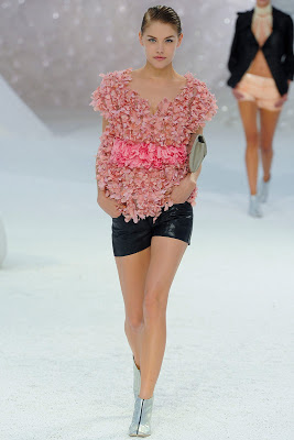 Chanel proponuje ubrania „w trójwymiarze” czyli bluzki wyglądające jak łąka pełna kwiatów lub kosz płatków róż, laserowo cięty tiul i kontynuację trendu błyszczącego w świeżym wydaniu.
