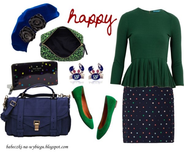 | buty Madewell, bluzka Alice&Olivia, spódnica Jil Sander, torba Proenza Schouler, kosmetyczka Mulberry, portfel Kate Spade, kolczyki dinodorect.com, beret Helene Berman |
