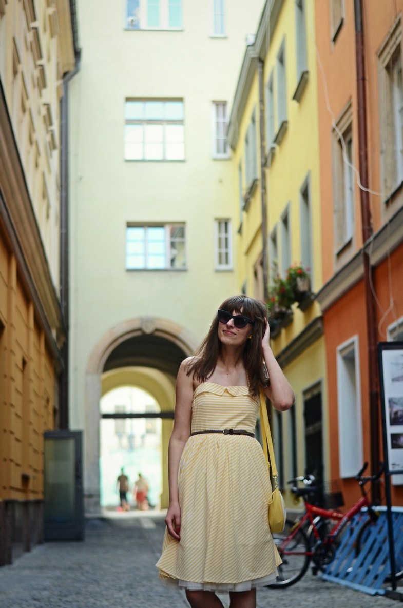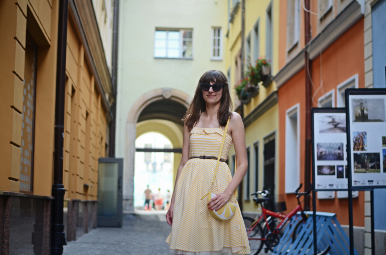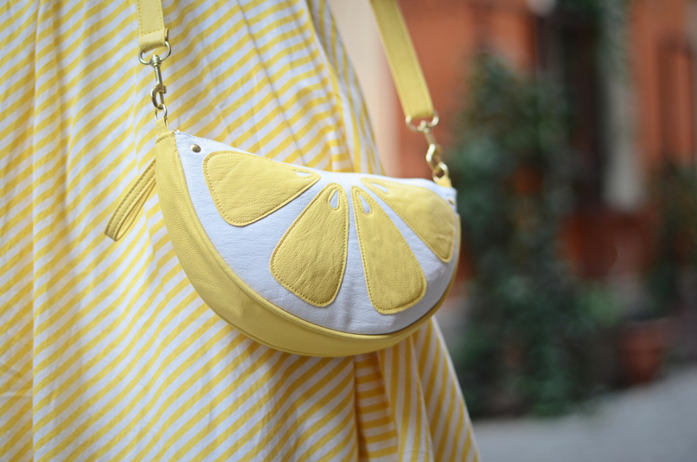 Piękna z Ciebie cytrynka, stylizacje zahaczające o retro są stworzone dla Ciebie, wyglądasz w nich rewelacyjnie. Co do torebki to widziałam gdzieś ostatnio arbuzika i ujął mnie za serce 🙂
