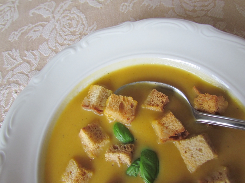 Nastają co raz chłodniejsze wieczory i taka pożywna zupa krem to idealne rozwiązanie na coś ciepłego do zjedzenia. Jak już kiedyś Wam pisałam, za zupami nie przepadam. I od kilku lat bardzo rzadko goszczą na moim stole, jedynie czasem jak wracam do domu to skuszę się na rosół ugotowany przez Mamę. Ale! Staram się czasem włączać je do jadłospisu – i w ten sposób jem grzybową mojej przyjaciółki Madzi, pomidorową czy brokułową, albo właśnie dyniową!